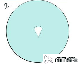 我们将布料剪裁成一个圆形后然后在布料圆形的中心位置剪裁出如图的开口,这里是防晒斗篷的领口位置具体的大小大家还需要参考一下自己的头围第4步: