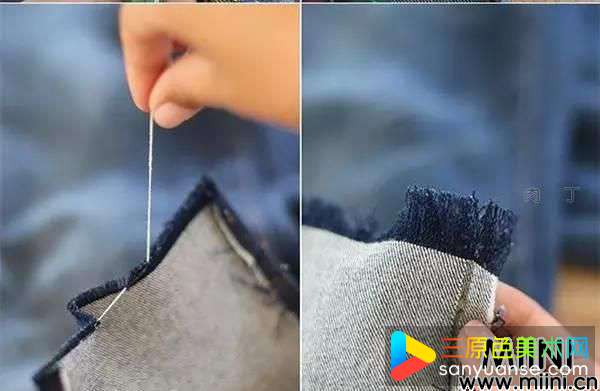 首先就是把裤子剪到自己想要的长度,方法跟上文的NO.1一样!再给裤脚磨毛边!用什么工具磨呢?这种小面积的磨毛边可以用你磨指甲的砂条或者指甲锉,再专业一点就是用干磨砂纸 裤脚猫须边牛仔裤猫须裤脚的牛仔裤,今年秋冬开始流行开来,我将它们分为小猫须和大猫须,小猫须可以用NO.2的磨砂法磨出来,也可以用大猫须的抽线方法。教程如下1).剪掉裤脚边,或者剪掉你想要的理想长度。2).抽出横线,留下纵线,想要留多长的猫须,就抽多少