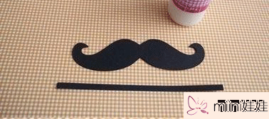 我们将胡子的剪裁图样制作完成后然后就可以在准备好黑色卡纸上面进行比照剪裁来,这里如果大家准备的卡纸硬度不够可以多剪裁一个相同的胡子然后进行张贴加固第3步: