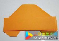 选取一张正方形,对边对折后,按中线裁开,形成两个长方形,如图所示:下边的两角折向对角,如图所示:以底角为顶点,两边折向中线,如图所示:折...